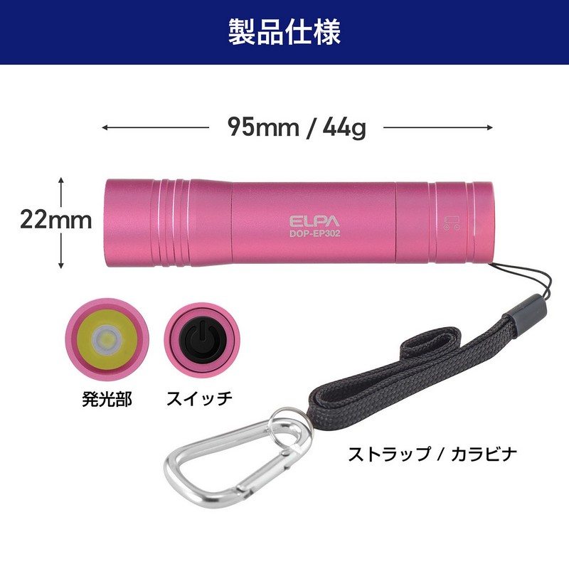 ●乾電池1本で点灯し、コンパクトで携帯に便利なサイズ