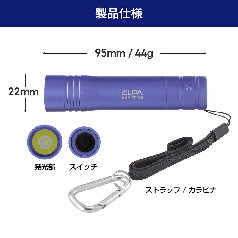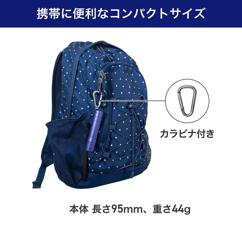 ●乾電池1本で点灯し、コンパクトで携帯に便利なサイズ