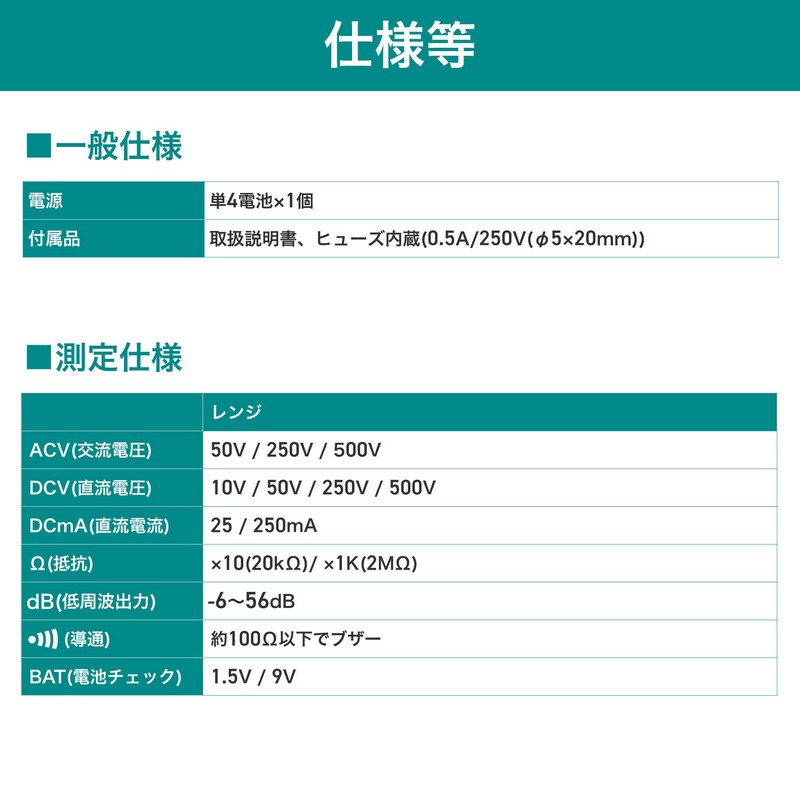 ●抵抗: x10(20kΩ)/x1K(2MΩ)