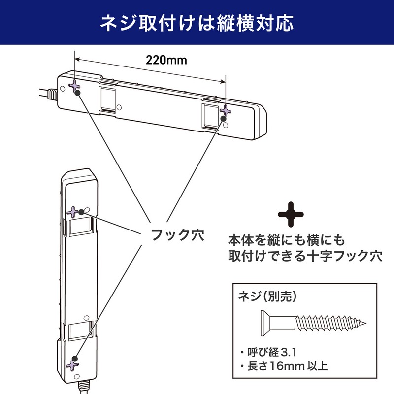 ●本体の向きによって、差込口向きが選べる