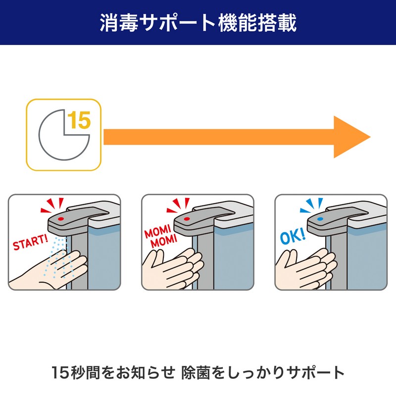 ●電源スイッチに軽く触れるだけで電源ON/OFFや吐出量の調整ができるタッチセンサー式。