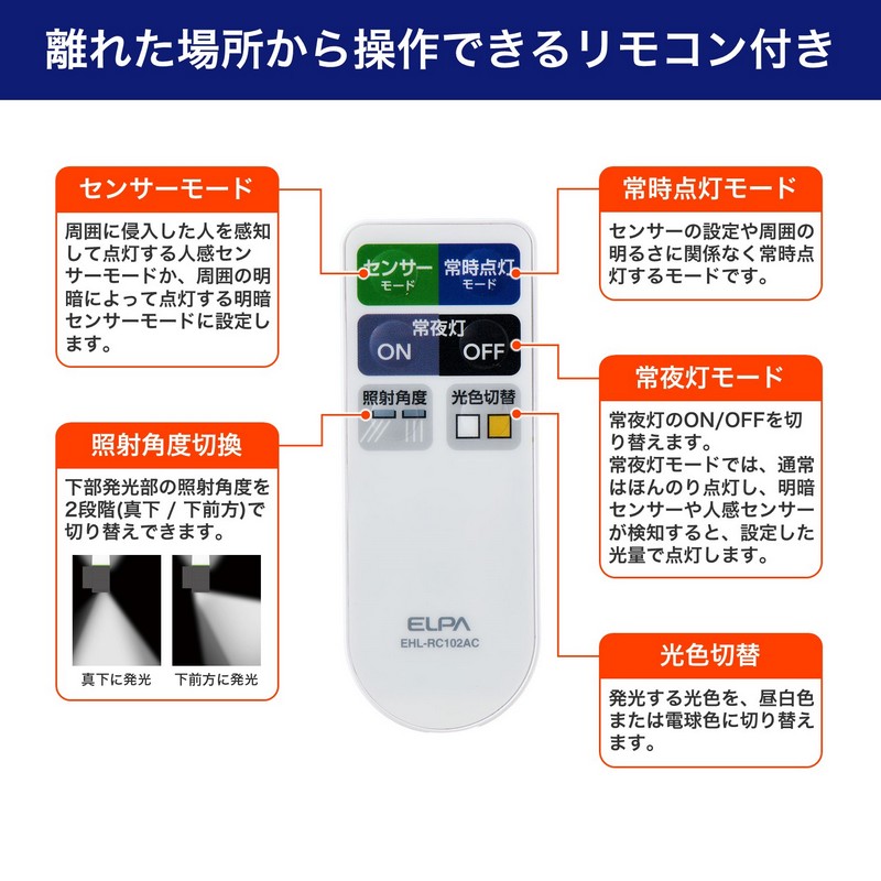 ●照射角度の切り替えが可能(下部発光部のみ)
