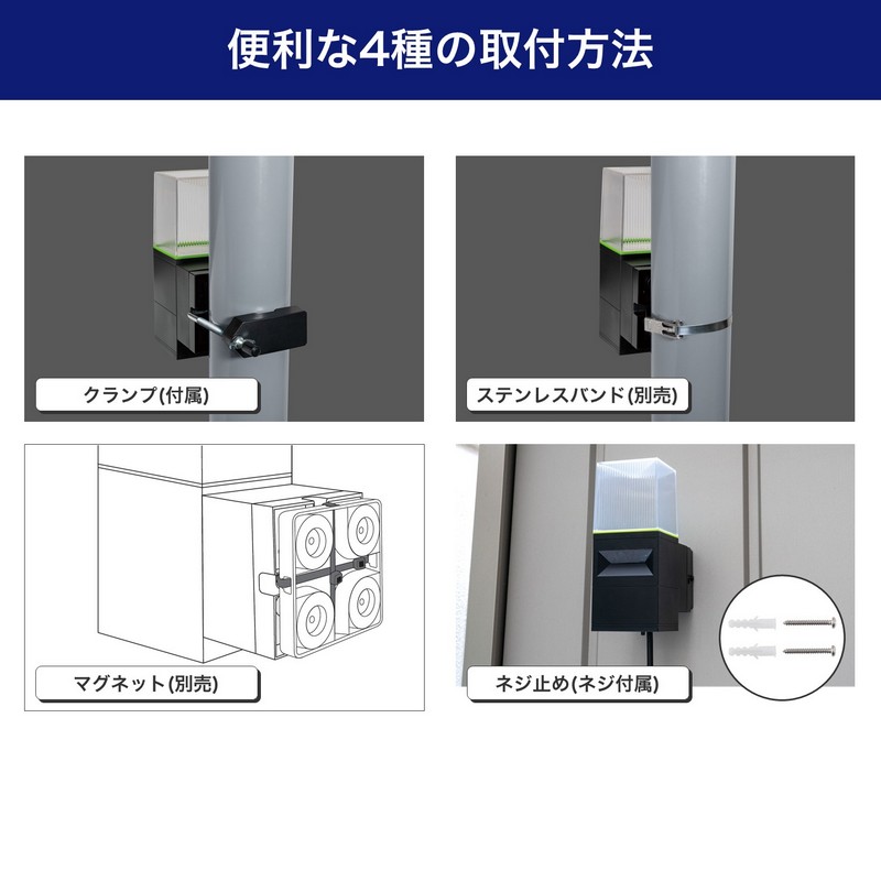 ●4種類の設置方法で取り付けが可能