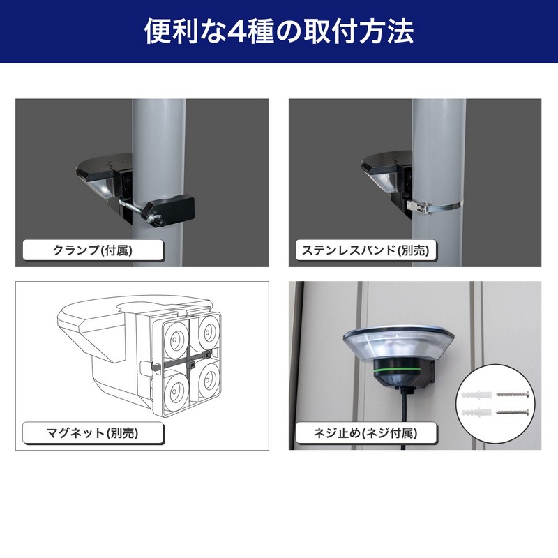 ■付属品:取付ネジ2本(Φ4×30mm)、コンクリート用スリーブ2本(Φ6×28.4mm)、クランプ1セット、取付ガイド1枚