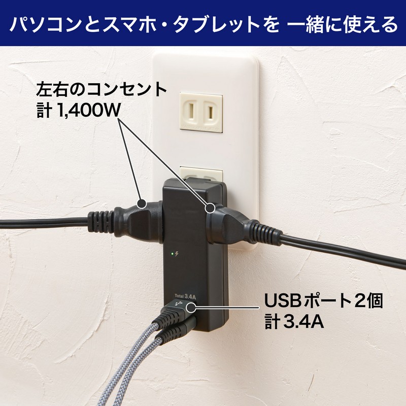 ●スマートフォンとタブレットを2台同時充電可能!(USBポート)