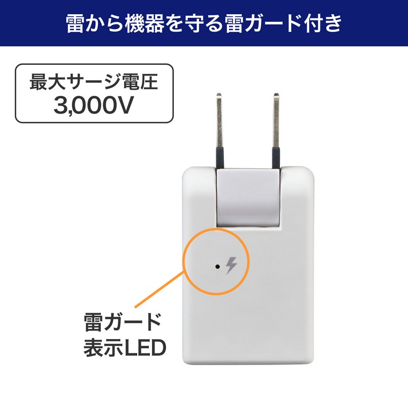 エルパ(ELPA) 電源タップ スイングアダプター 雷ガード A-380SB(W)