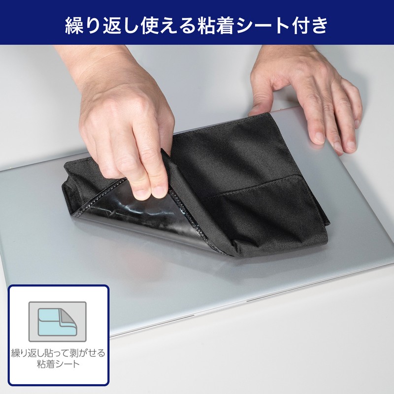 ●ノートPCに貼り付けて外付HDDやマウスなどの収納ができる