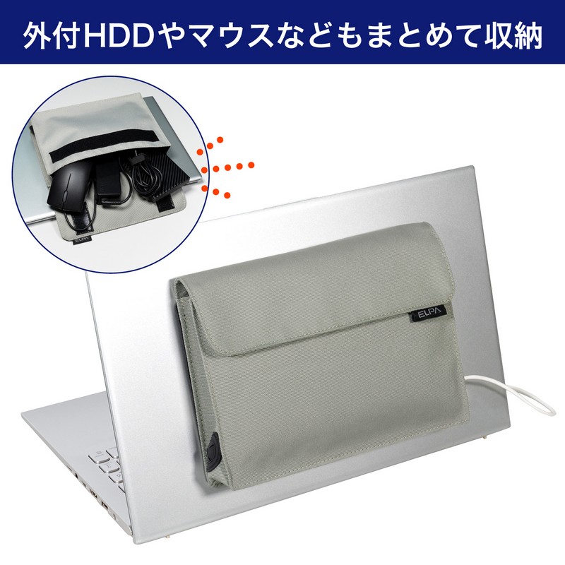 ●ノートPCに貼り付けて外付HDDやマウスなどの収納ができる