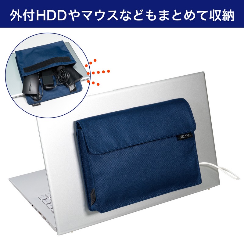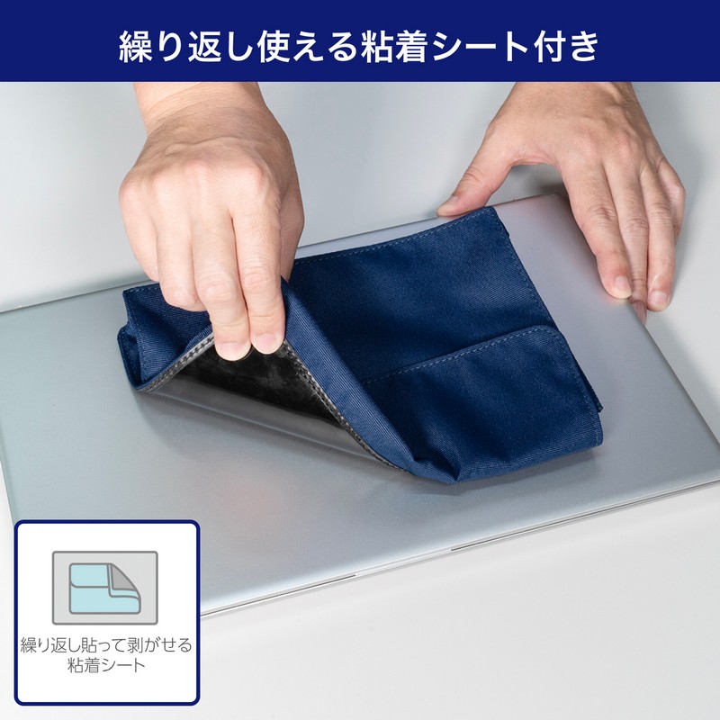 ●ノートPCに貼り付けて外付HDDやマウスなどの収納ができる