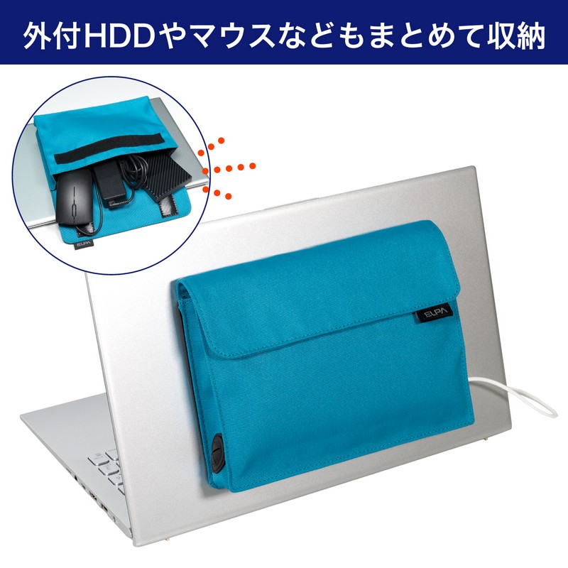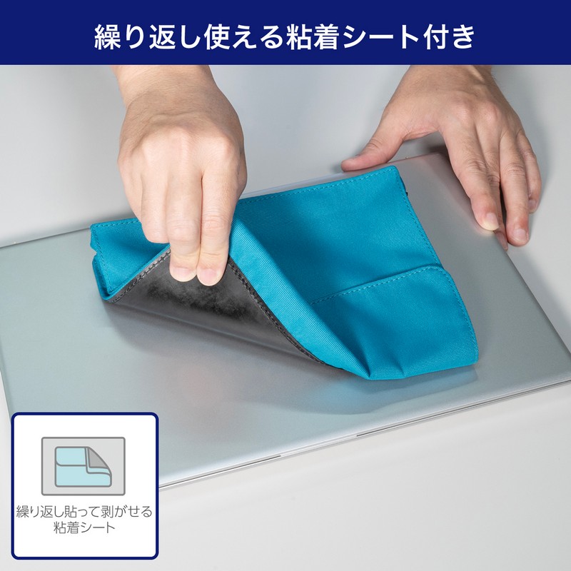 ●ノートPCに貼り付けて外付HDDやマウスなどの収納ができる