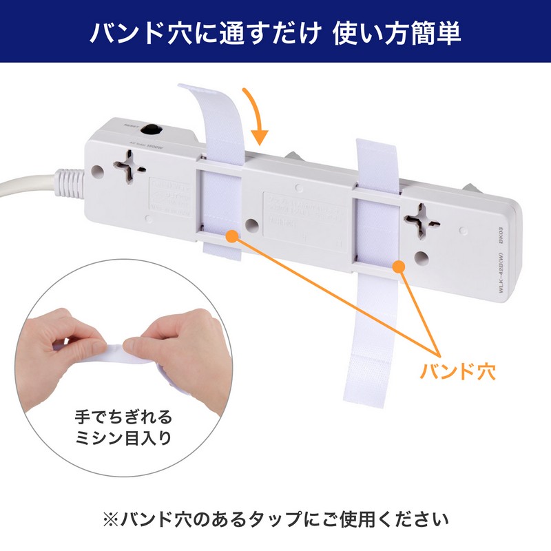 ●ワイヤーネットなどに取り付けることで、足元の邪魔な電源ケーブルを整理できます。