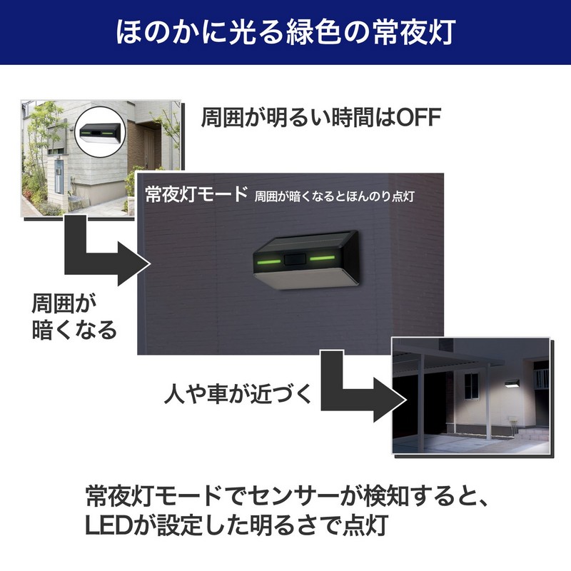 ●暗い時にセンサーが人や車の動きを検知して自動点灯