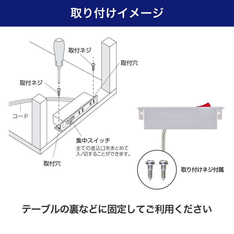 ●DIYで制作した机や棚にもコンセントをスッキリ取り付けできる