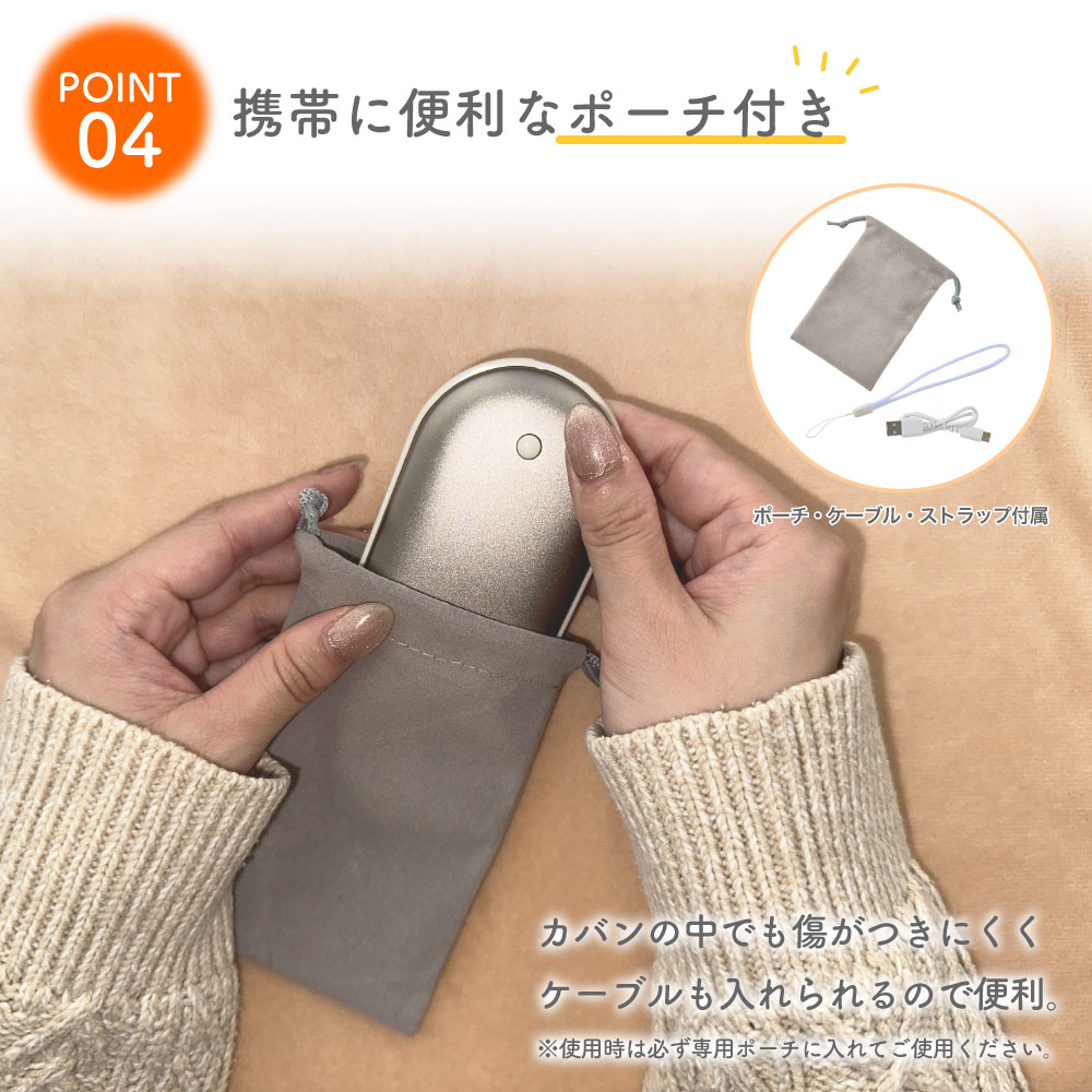 ●本体とケーブルを入れられる携帯に便利なポーチ付き