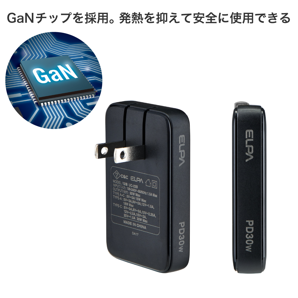 ●GaNチップを採用。発熱を抑えて安全に使用できます