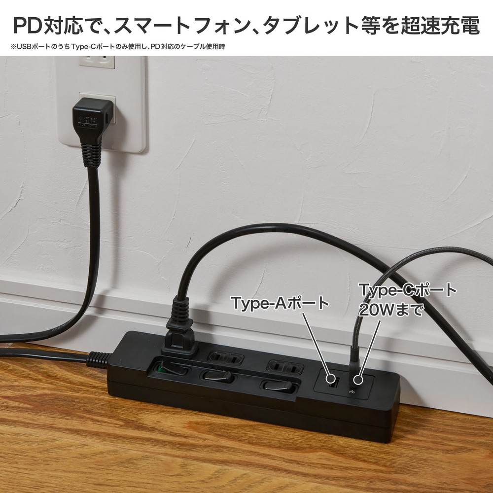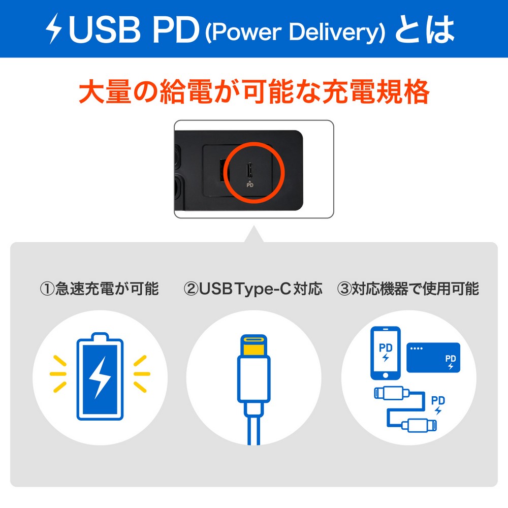 ●PD(パワーデリバリー)対応で、スマートフォン、タブレット等を超速充電できます。最大20Wまでの給電が可能。