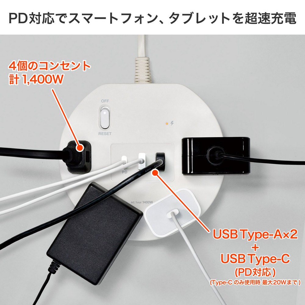 ●PD(パワーデリバリー)対応で、スマートフォン、タブレット等を超速充電できます。最大20Wまでの給電が可能。
