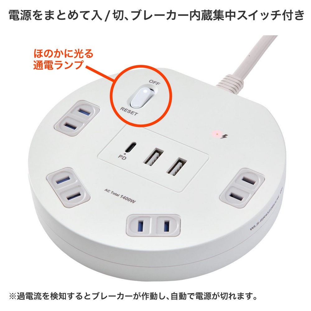 ●ブレーカー内蔵集中スイッチ付きで電源をまとめて入/切できます。