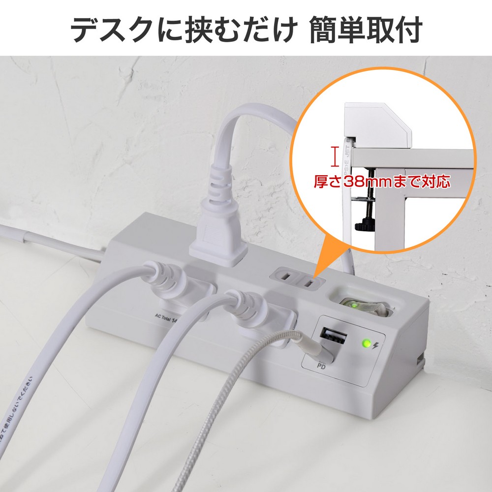 ●コードの出す向きを3方向に変えられて、机を壁にピッタリ設置できる