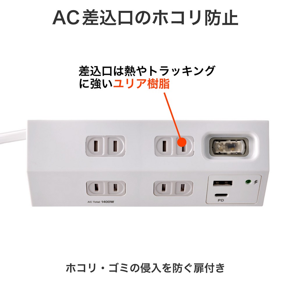 ●AC差込口はホコリ・ゴミの侵入を防ぐ扉付