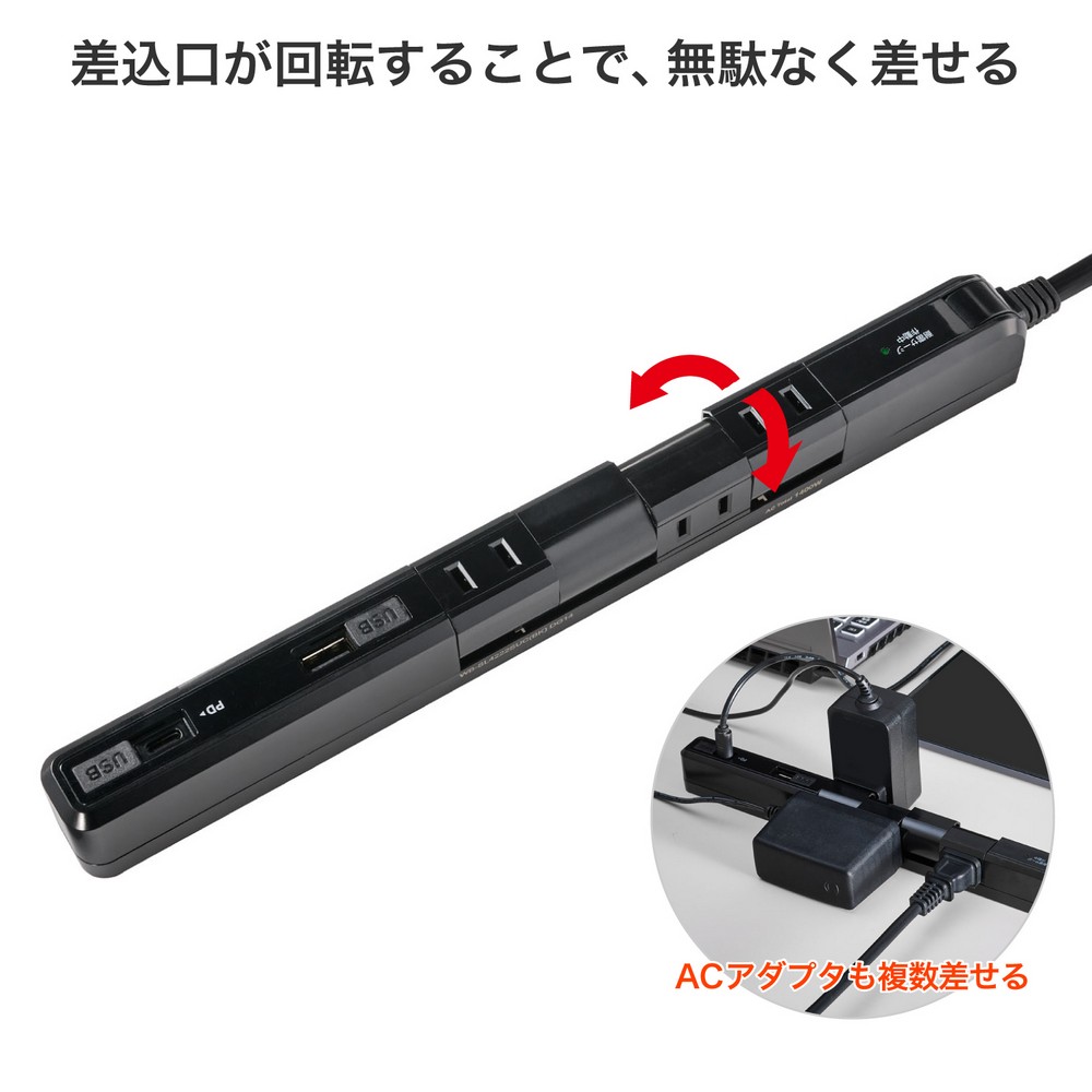 ●コードが上下180°に回転、ラックや壁面に沿わせてスッキリと配線