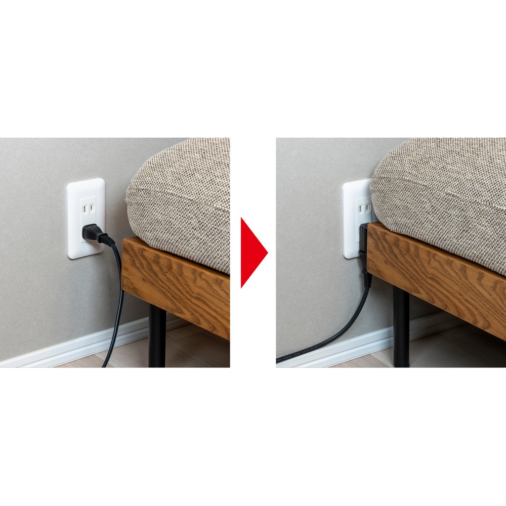 ●プラグの向きを縦方向に変えることで、コードを真下に配線できます