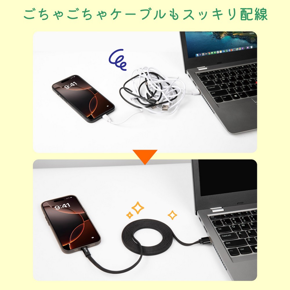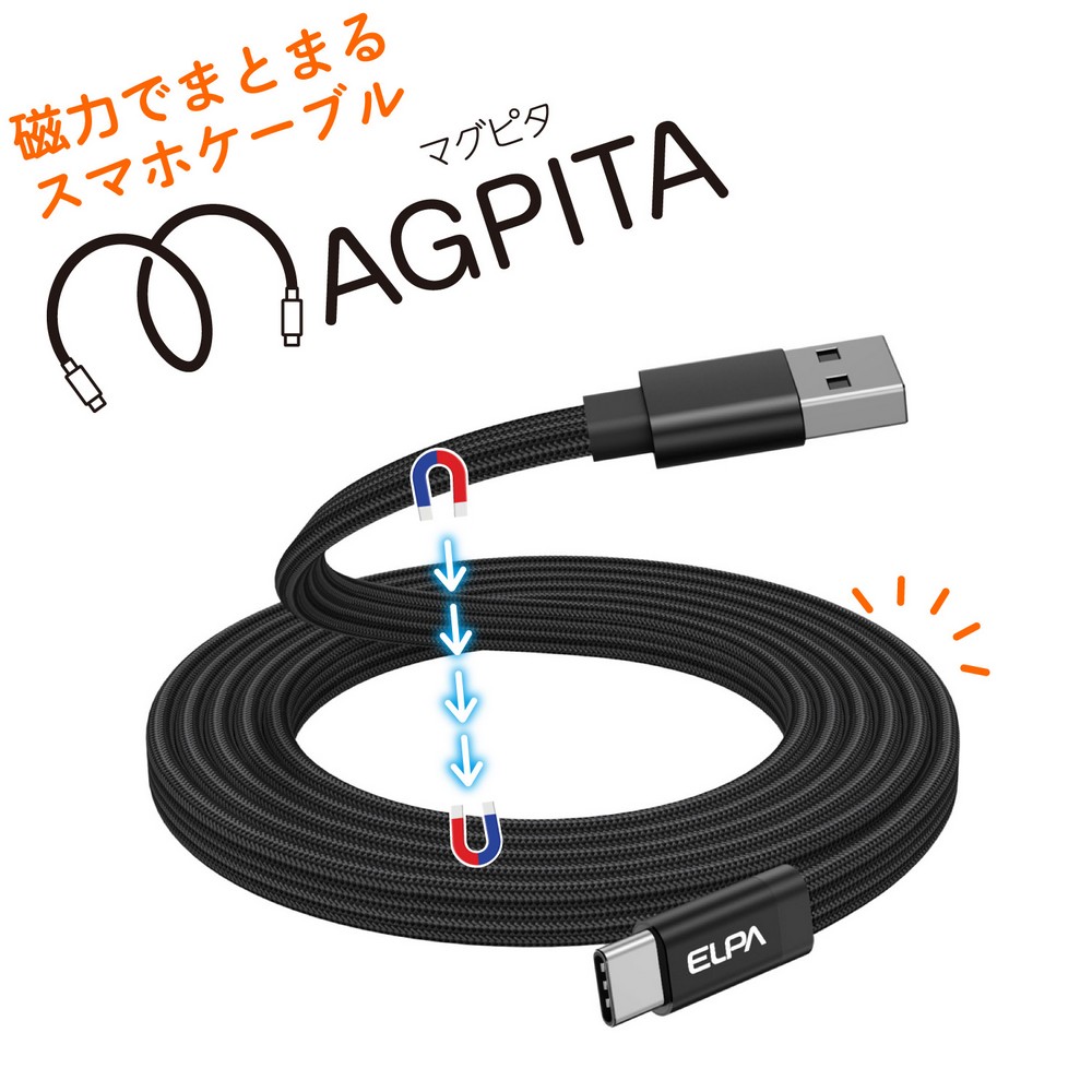 エルパ(ELPA) マグピタ マグネットUSBケーブル 平形 PD27W TypeA → TypeC 1.5m ブラック MCA-FAC1527(BK)