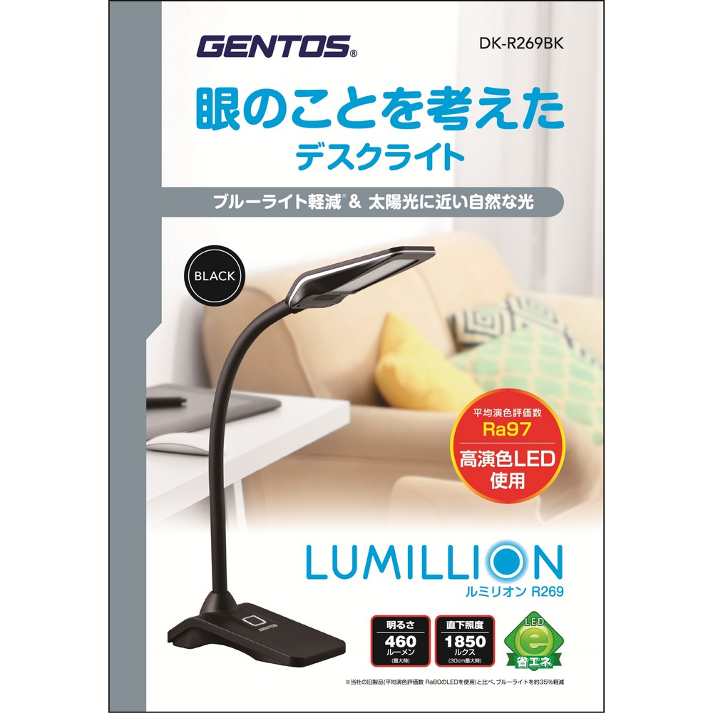 ジェントス 眼のことを考えたデスクライト 460ルーメン ブラック DK-R269BK