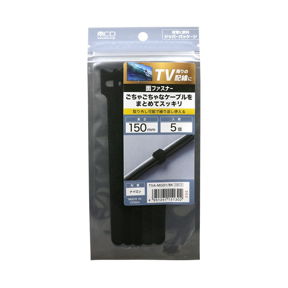 幅広タイプなのでケーブルが傷つきにくく、しっかりまとめます。