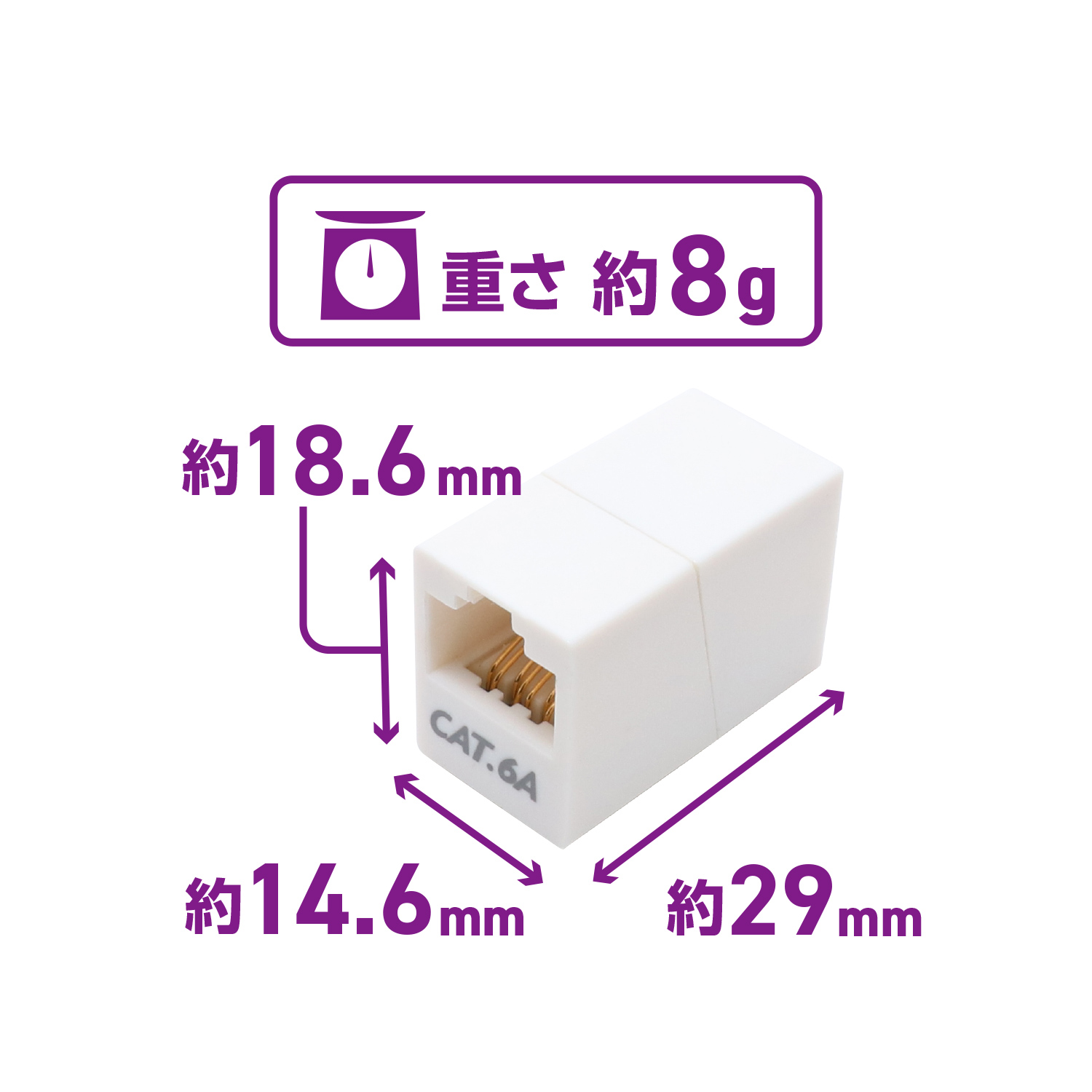 ■コネクタ仕様:RJ45、8極8芯(メス×2)、ストレート全結線、UTP