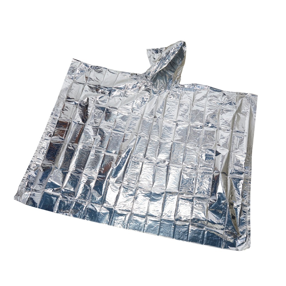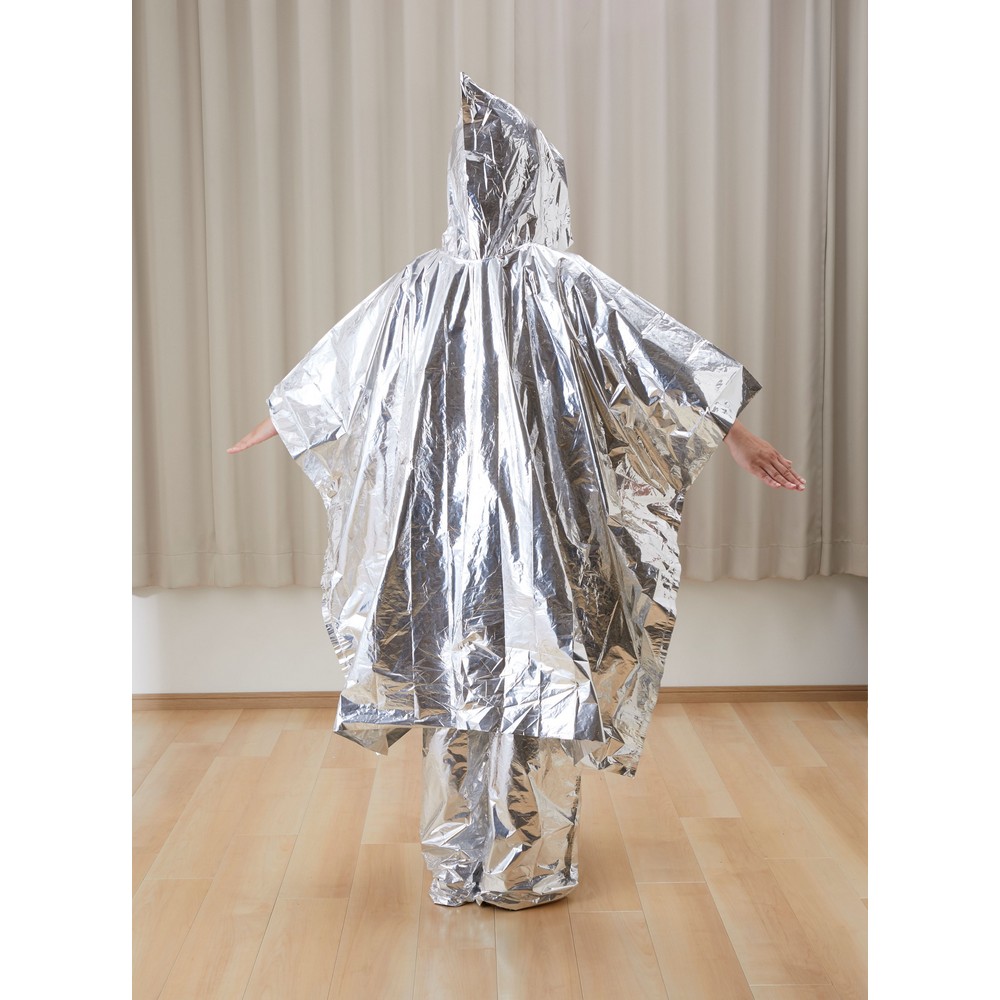 ●いざという時に暖をとれる、カサカサ音がしにくい静音加工仕様のアルミ製ポンチョとパンツのセット品です。