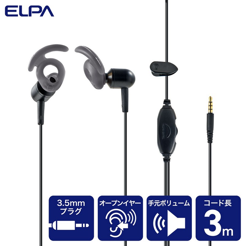 エルパ(ELPA) まわりの音も聞こえるイヤホン テレビ用 3m ブラック OEP-TV30(BK)