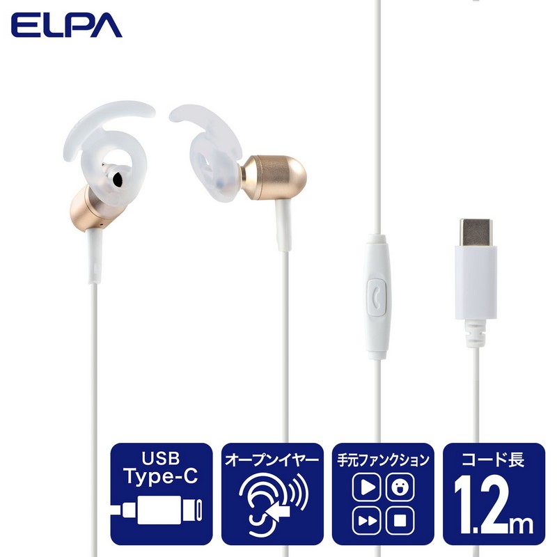 エルパ(ELPA) まわりの音も聞こえるイヤホン スマホ用 USB Type-C 1.2m ホワイト OEP-C12(WH)
