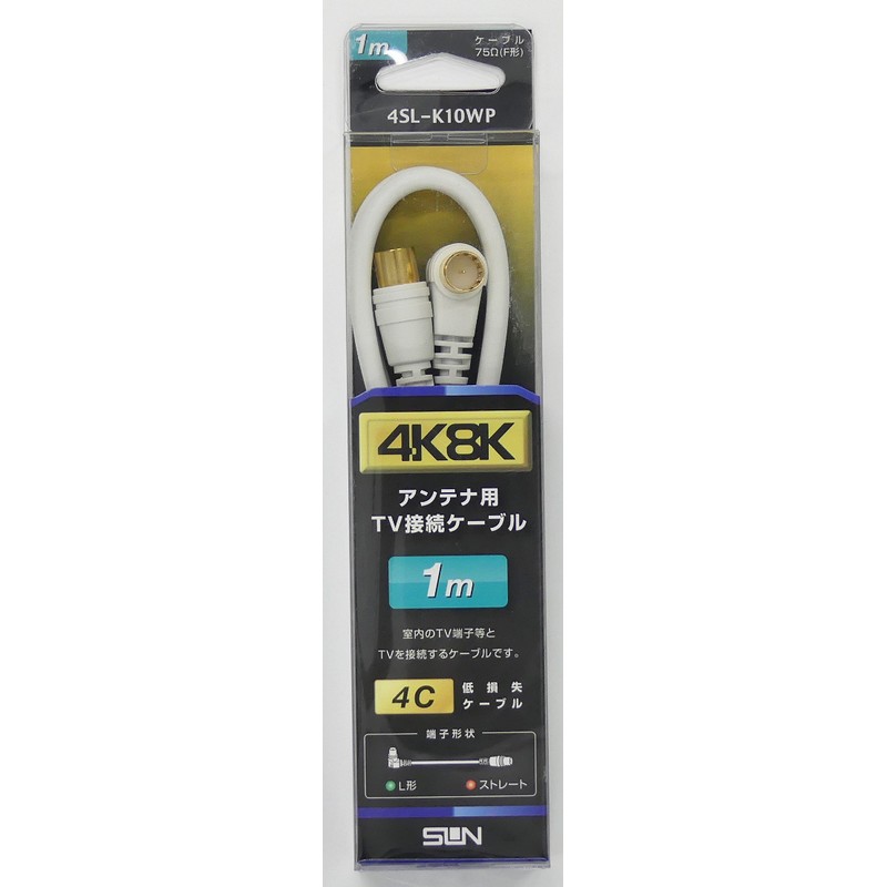 【再入荷なし】サン電子 4K8K対応 4CケーブルSL 1m ホワイト 4SL-K10WP