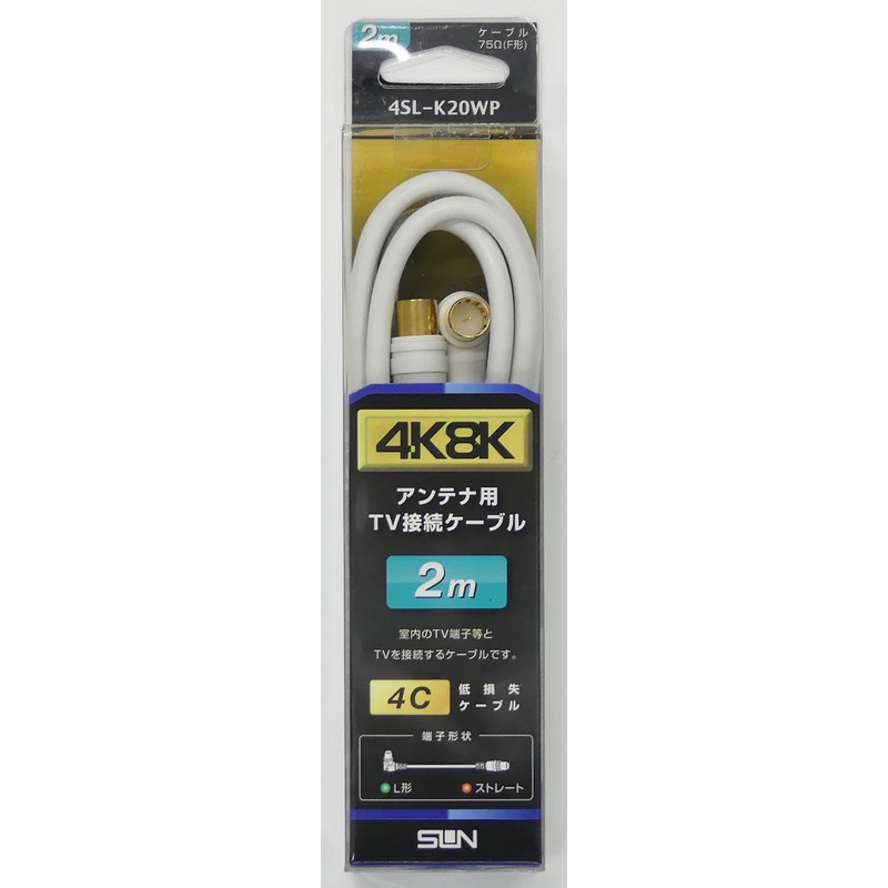 サン電子 4K8K対応 4CケーブルSL 2m ホワイト 4SL-K20WP