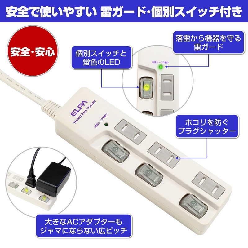 安全性を高めるために、雷ガードほこり防止シャッターが搭載されたモデルを選ぶと安心です。これらの機能は、過電圧や火災のリスクを軽減します。