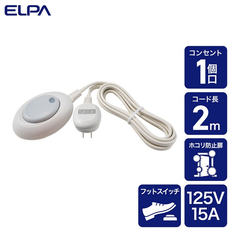 エルパ(ELPA) フロント電源タップ 集中スイッチ AC2個口 雷ガード A-S200B(W)