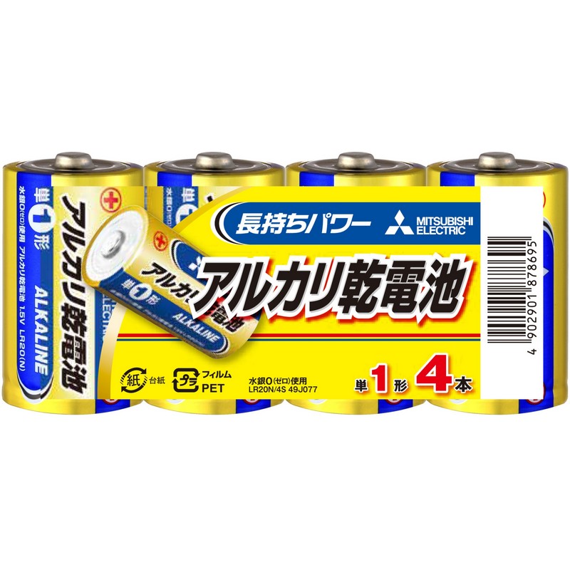 三菱 アルカリ単1形4本パック R20N/4S LR20N/4S