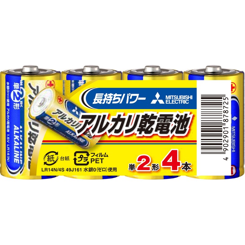 三菱 アルカリ単2形4本パック R14N/4S LR14N/4S