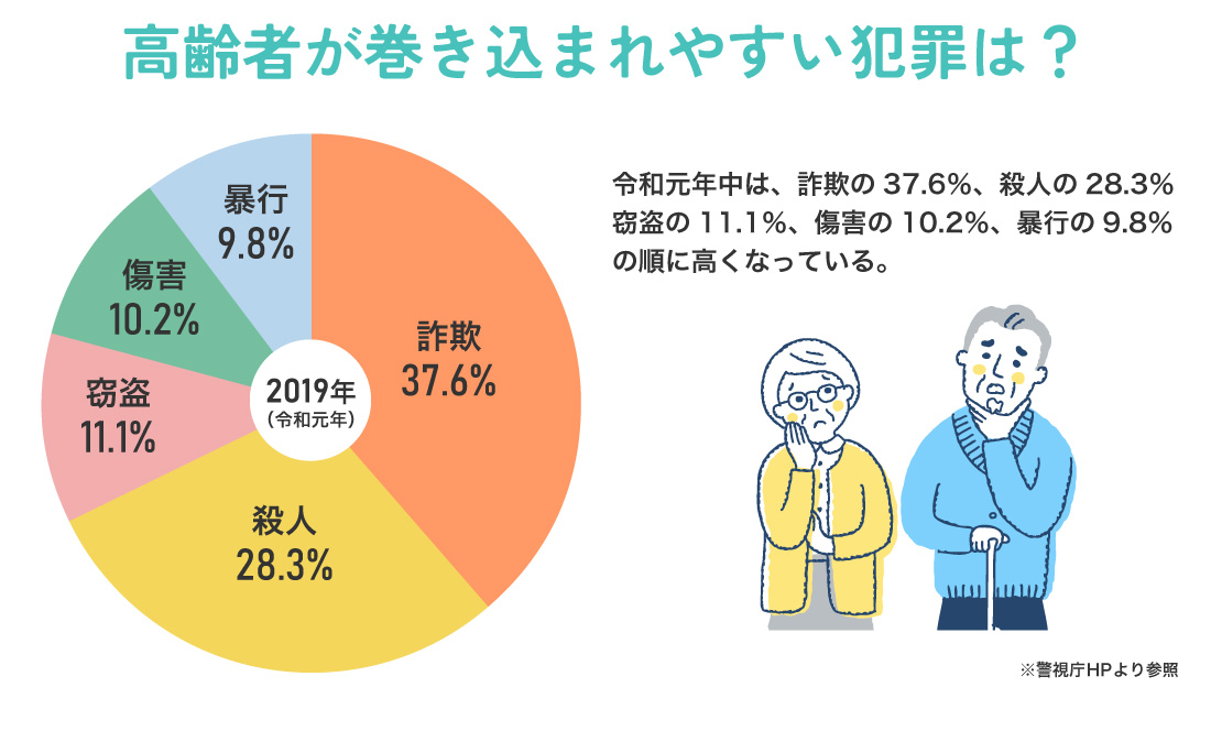 また認知機能の衰えにより詐欺などにかかりやすく、狙われやすい存在です。
